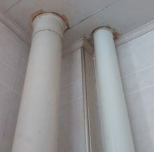 (7)在埋地的排出管施工中常出現的兩個問題:一個是室內地坪以下管道鋪設未在回填土夯實以后進行。造成回填土夯實以后雖在夯實前灌水實驗合格,但使用后管道接口開裂變形滲漏:另一個是隱蔽管道時左右側及上部未用砂子覆蓋,造成尖硬物體或石塊等直接碰觸管外壁,導致管壁損傷變形或滲漏。